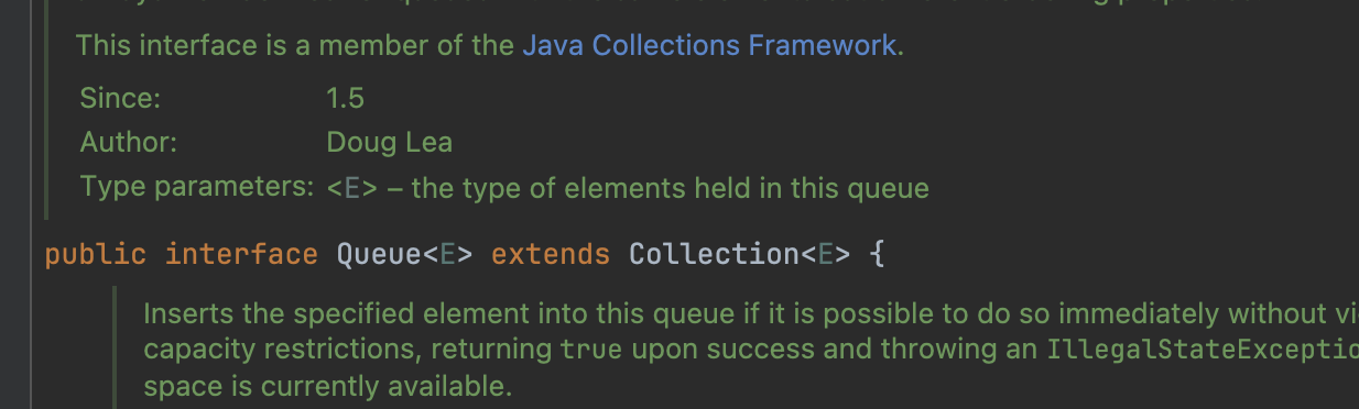 위에 보이듯이 Queue 자체는 Collection 인터페이스를 상속한 인터페이스이다.