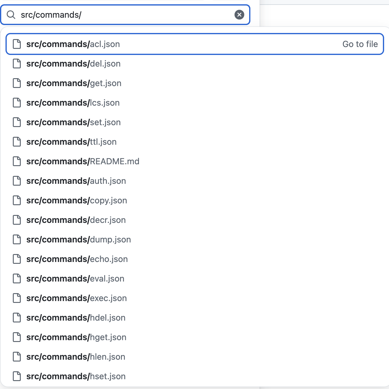 bitmap, cluster, connection, geo, hash, hyperloglog, list, pubsub, scripting, sentinel, server, set, sorted_set, stream, string, transactions로 분리된 Main command까지 잘 정의 되어 있는 것을 확인할 수 있었다.