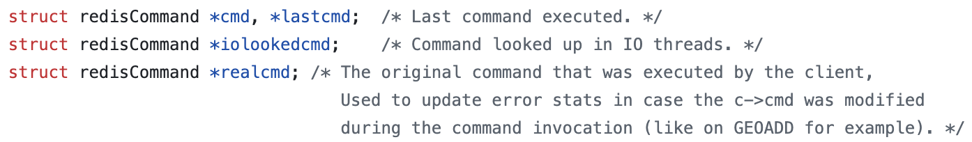 if (isCommandReusable(c->lastcmd, c->argv[0])) cmd = c->lastcmd;에서 lastcmd 필드를 조회해서 해당 client의 이전 명령어를 이번에 들어온 명령어인 argv[0]과 비교하여 재사용 가능한지 확인하여 명령어 포인터에 할당한다.