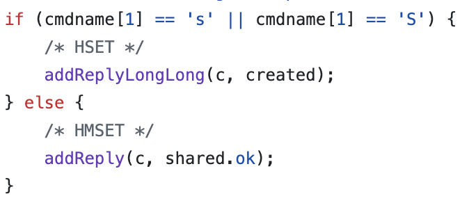 "HSET" 명령어의 hsetCommand() 기준으로는 아래 코드이다.