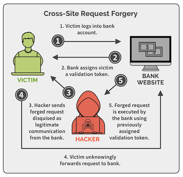 - 일반 유저의 브라우저에서 일반 유저에게 부여된 인증 토큰을 사용하여 은행은 악의적인 의도가 담긴 요청을 실행한다.