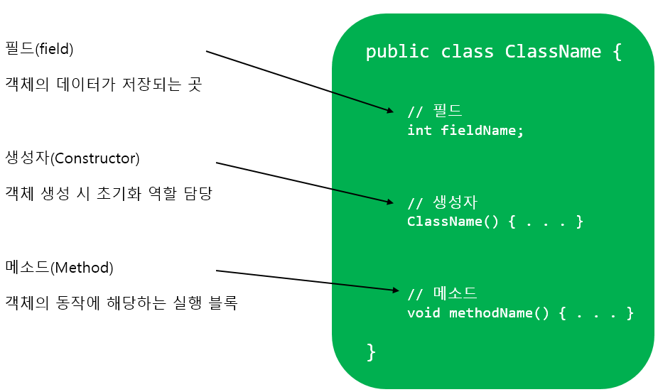 클래스 멤버에는 위에서 언급한 대로 필드(Field), 생성자(Constructor), 메소드(Method)가 있다.